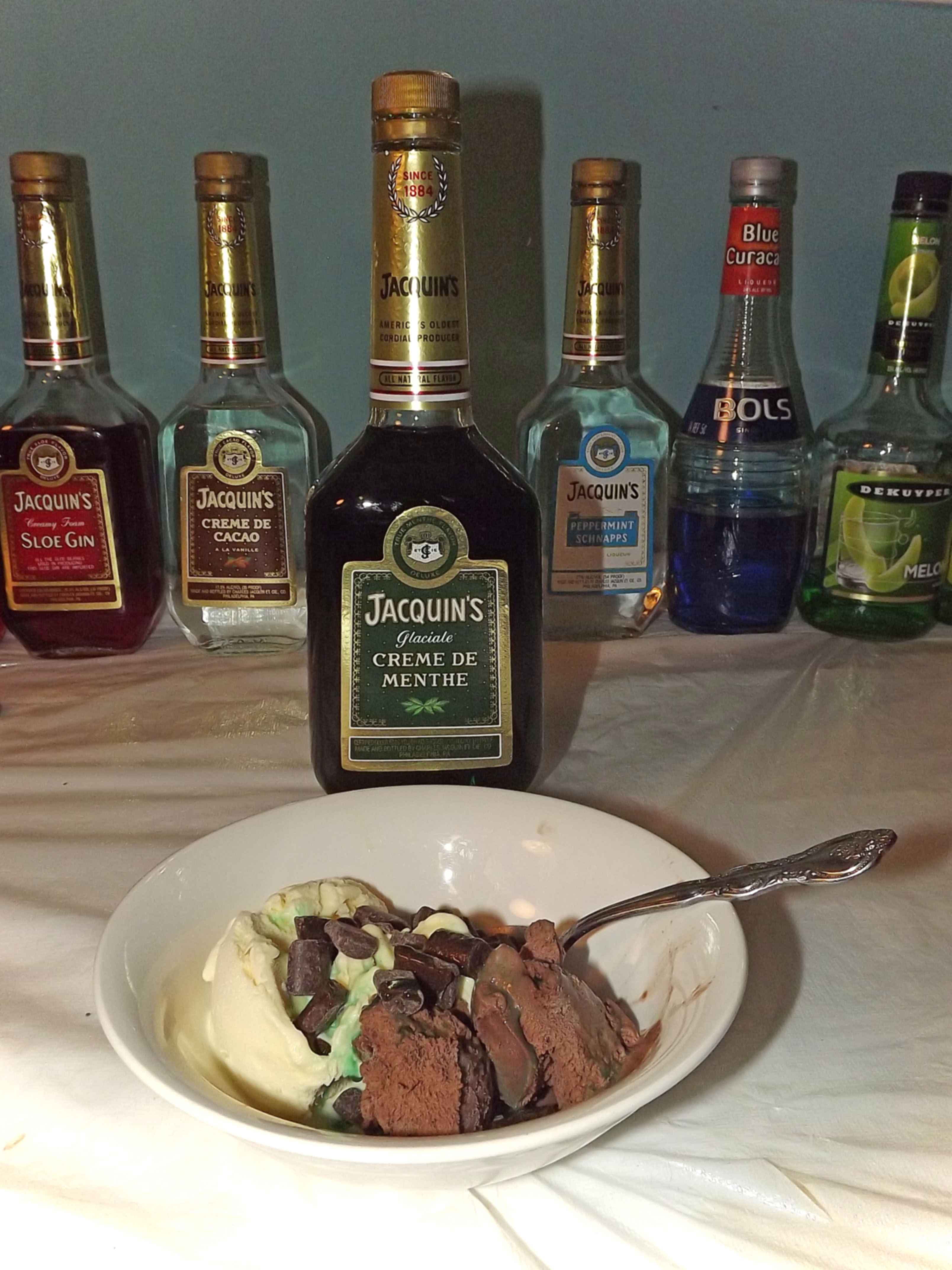 Grab your favorite chocolate or vanilla ice cream (or both) add chocolate chips/chunks and drop in a splash of creme de menthe. Note that creme de menthe syrup from your local supermarket can be used to make this dessert accessible to all ages!