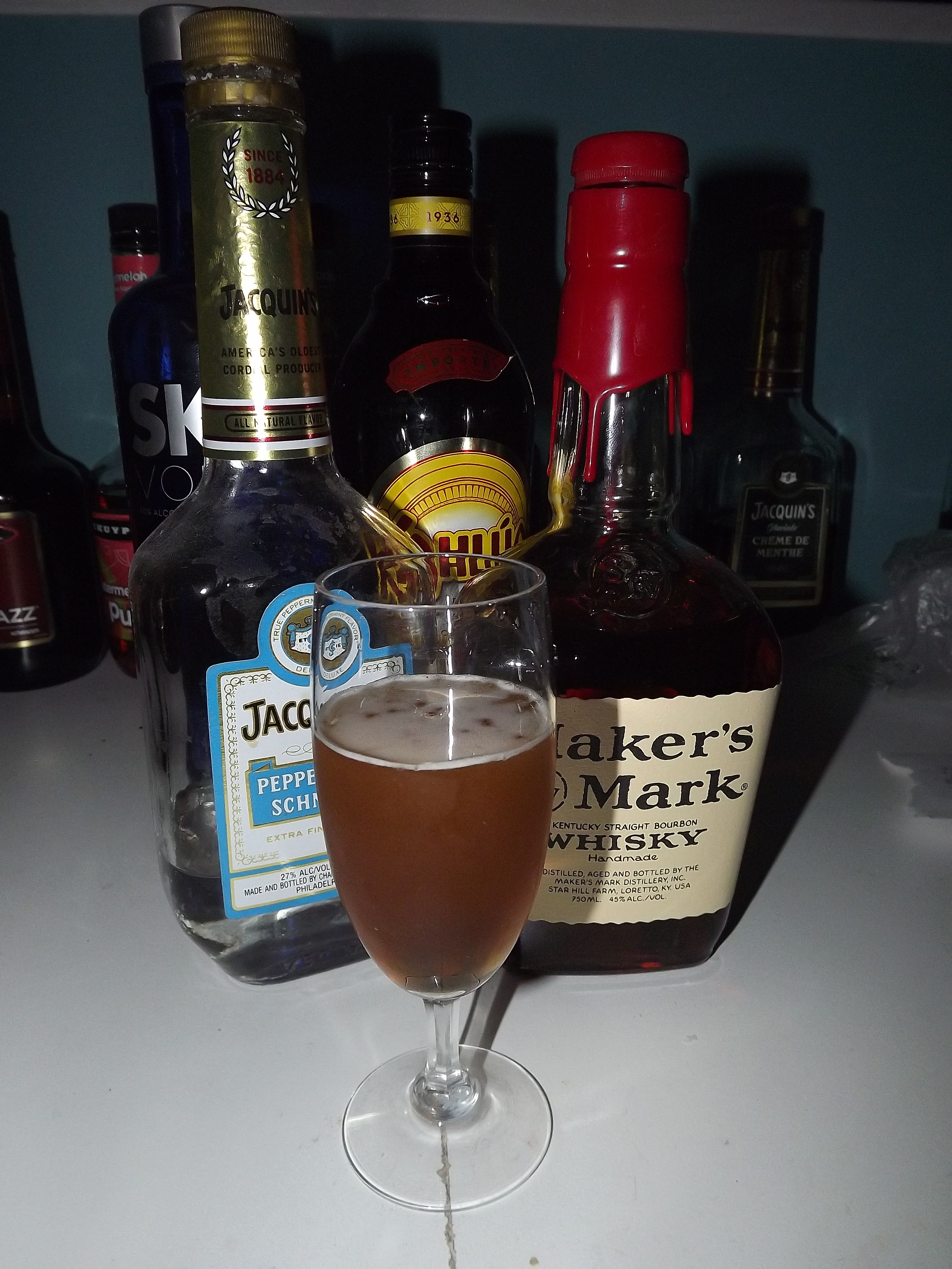 It’s the first day of Fall and we’re rolling in the season with an interesting bourbon drink. Now I’m not one for coffee in general, but I will tolerate Kahlua on the occasion, and this makes an interesting use of the liqueur. The oaky taste of bourbon and Kahlua begins this drink and it ends on a refreshing peppermint blast. Presentation is pretty simple, and its slight mint and earthy bourbon aromas. If you have the ingredients it might be worth a try, but personally I’ll be ranking this one lower as coffee doesn’t sit well on my palette.