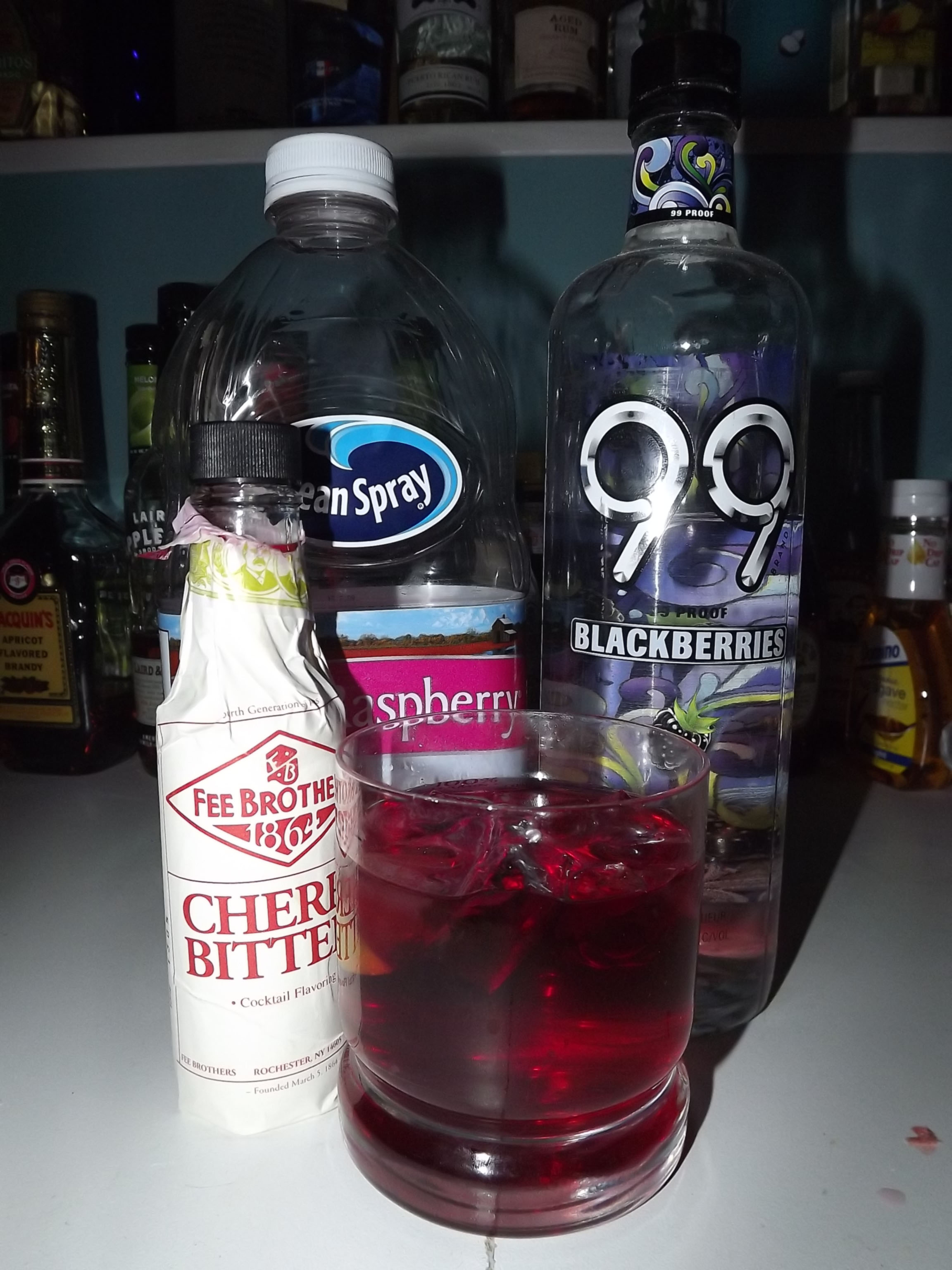 So on to the drink’s flavor and presentation. The drink itself is a deep purple color, but if you weren’t holding it up to the light all you’d call it was “black.” The orange on the drink gives bit of mystery as to exactly what flavors are in play here. The drinks has an inviting juicy aroma, with a subtle bit spiced rum. The drink starts with a nice sweet start, a strong rum taste on the mid-palette, then finishes to a complex fruity taste of the mix of juices and moonshine. It should be noted that the grenadine you use will be very important here. Don’t use a cheap bottle of Rose’s but instead look for something that actually gives you the natural pomegranate flavor. I’m also not usually one to specifically recommend a brand name alcohol, but I think anything other than Kraken would ruin the cocktail.