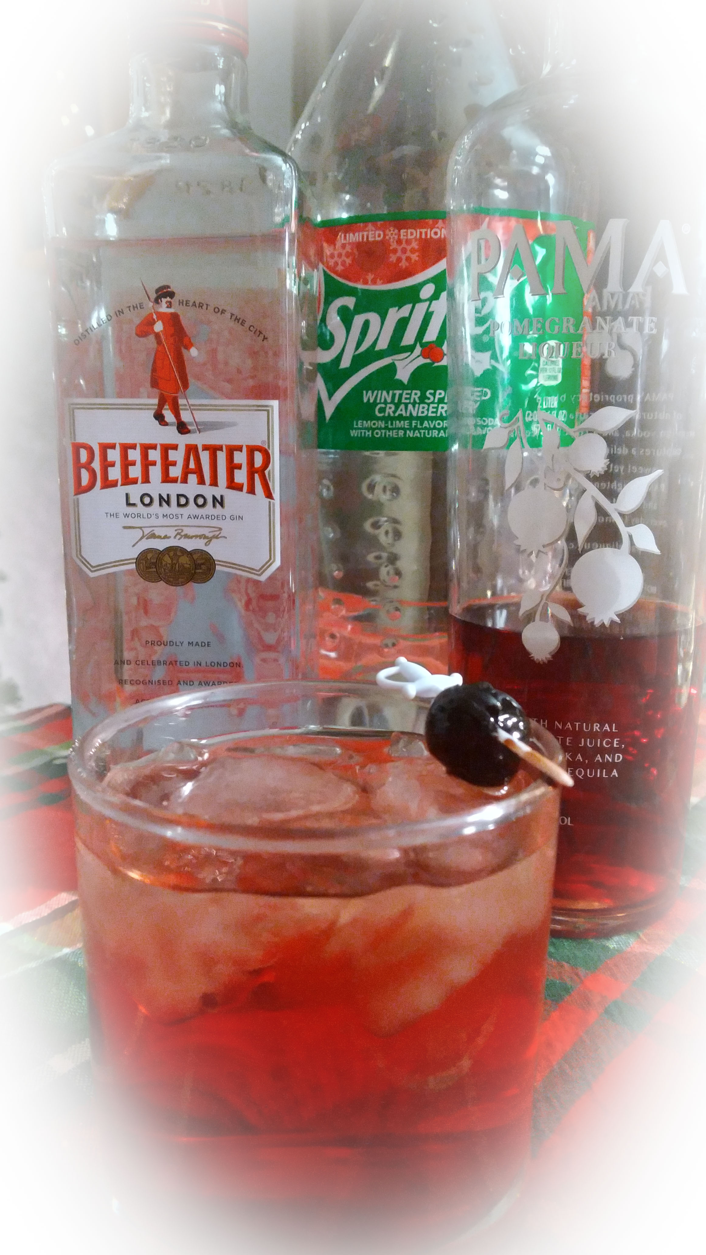 So, a few months back I finally got my hands on some Pomegranate Liqueur. I’ve seen it in various recipes over the years, but could never manage to track some down until recently. Granted I wasn’t going out of my way to find it, but the bottle certainly did catch my attention. Pama Pomegranate Liqueur mixed Pomegranate Juice with Vodka and Tequila for an interesting sweet and tart flavor for a cocktail. Drinking through a whole bottle in a week I was convinced that it was the perfect choice for a Christmas themed cocktail creation.