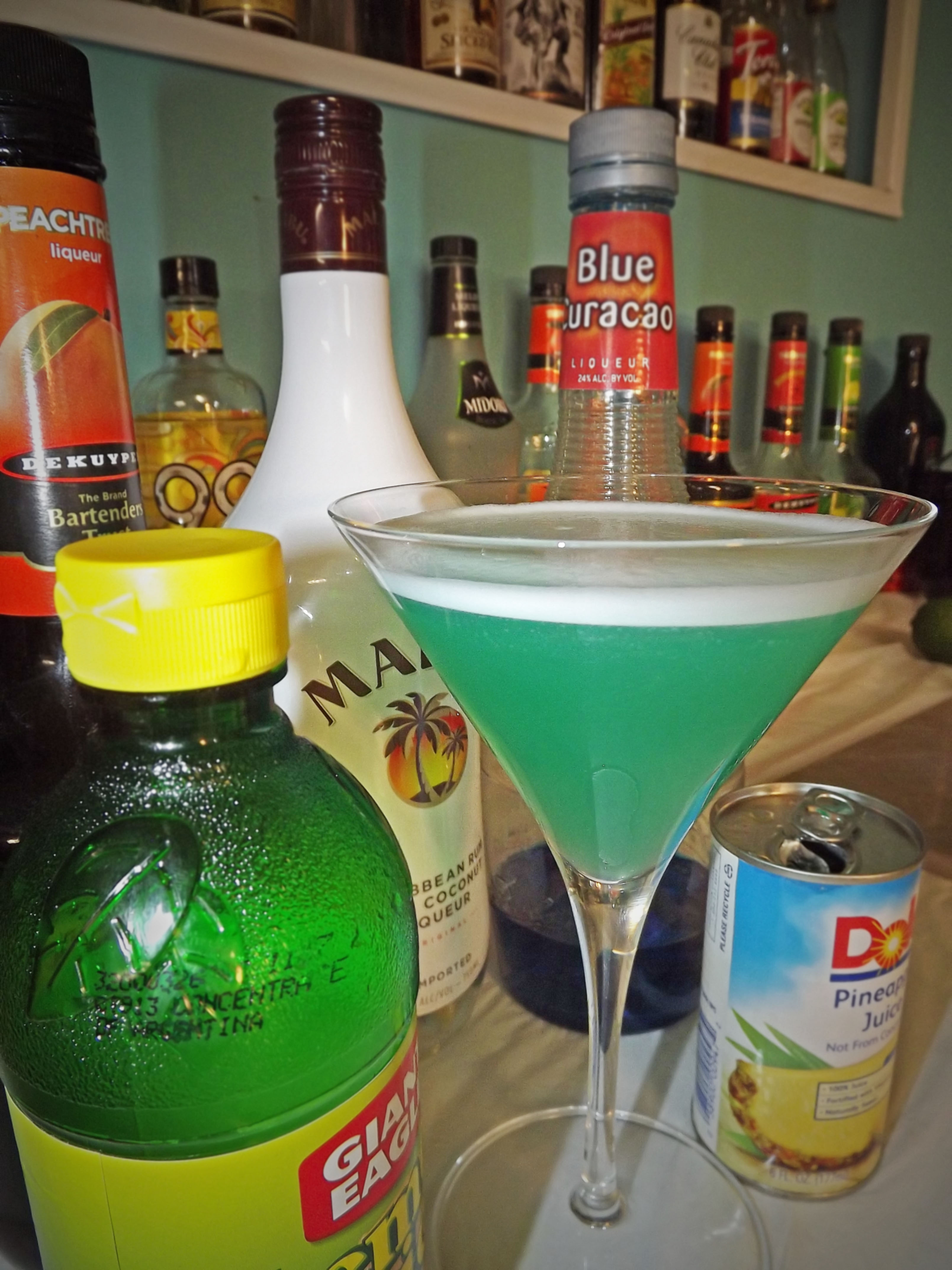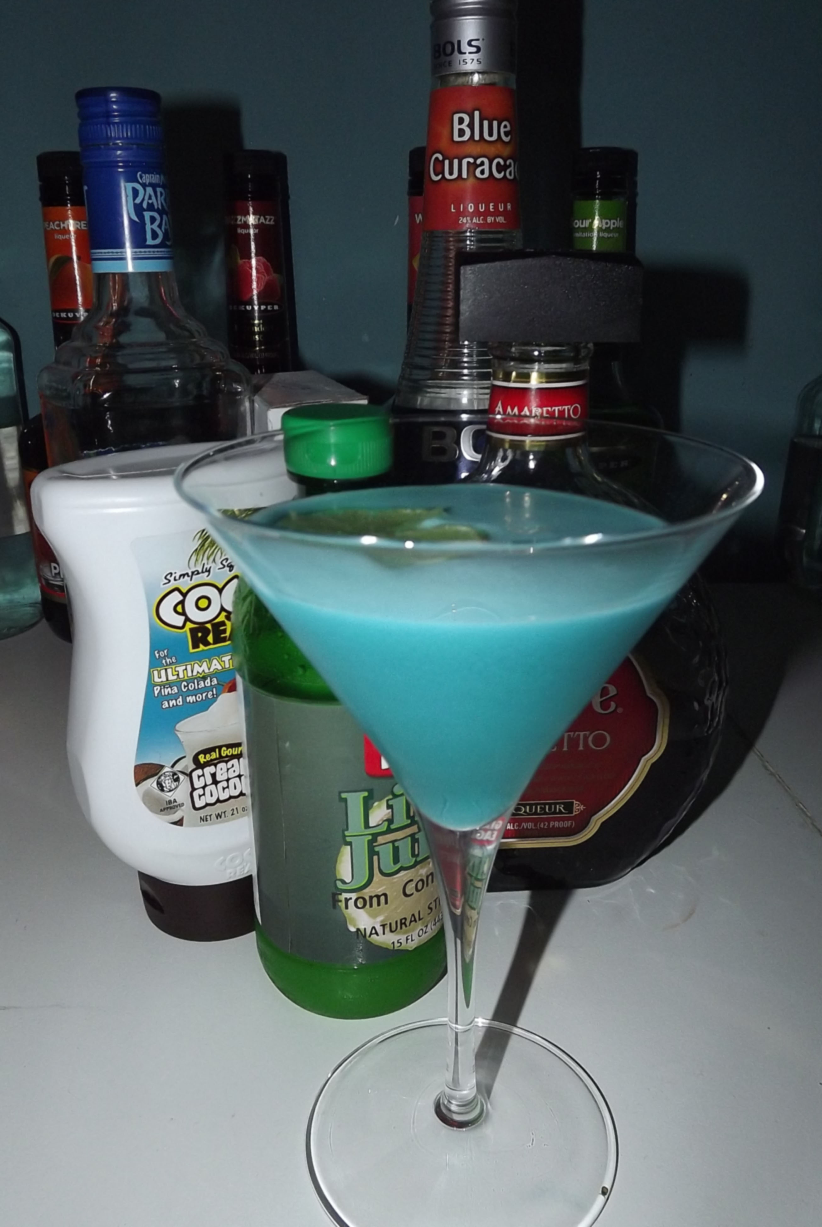 Well I’m back from a long hiatus here on the blog and I’ve got with me a brand new MoM original. Today we’ve got the “Blue Tropical Waters” inspired by a recent switch from 99 Bananas to a more traditional banana liqueur. A wonderfully colored drink with a crisp blue jewel color makes for an inviting cocktail creation. The drink has a clean orange and banana aroma to start you off. On first taste you get a clean and sweet coconut flavor, mid-pallet you’re greeted with some refreshing lime, and it ends with a banana and coconut balance that invites you back for more. I pretty much created this one on the fly, and am impressed with how well the flavors balanced each other out, as well as the 3 distinct flavor profiles. Give this one a try for yourself